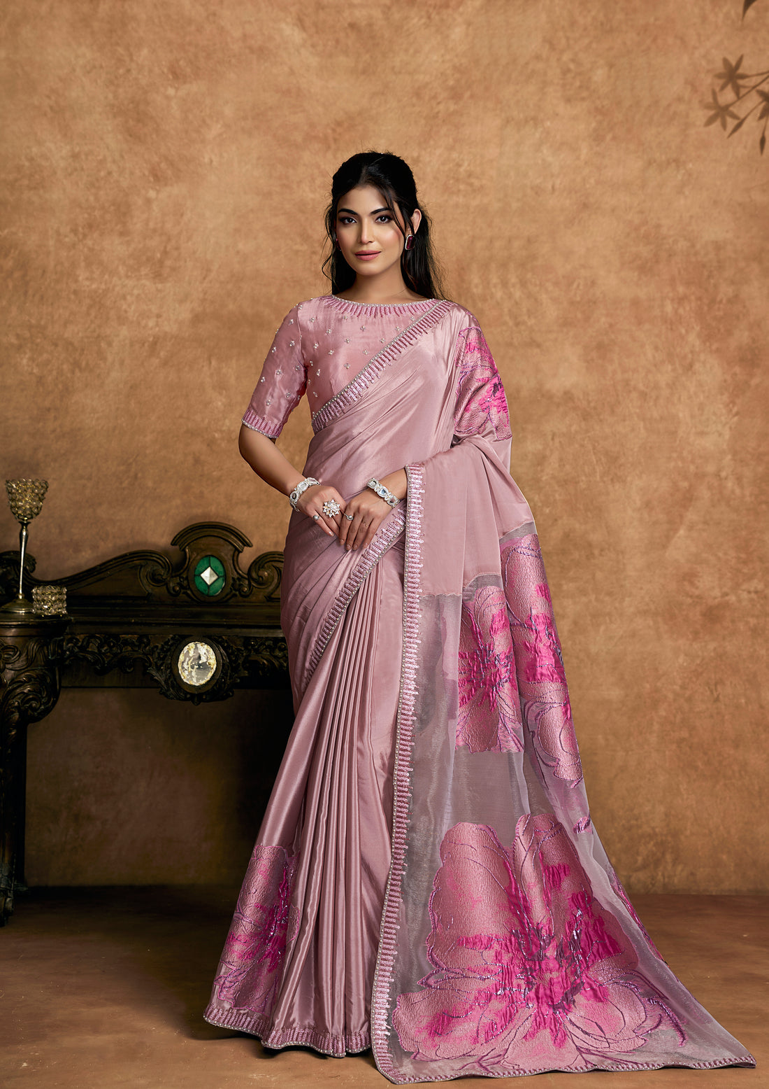 Brown Two Tone Satin Silk Sequins Embroidery Ready to Wear Saree