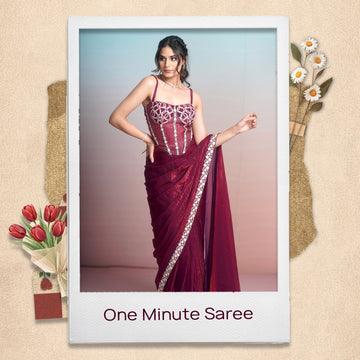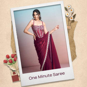 Wine Two Tone Satin Silk Beads Ready to Wear Saree