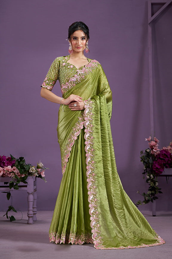 Green Sequence Work Glass Tissue Saree