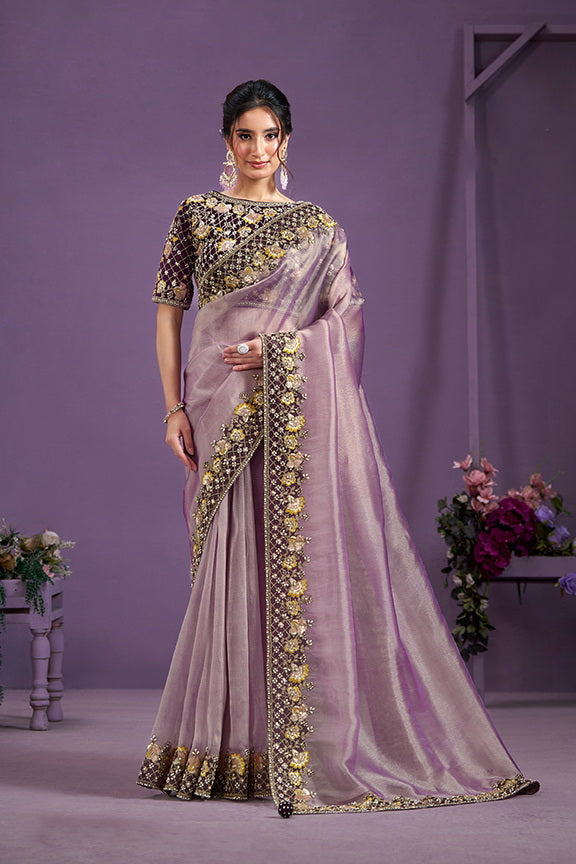 Pyaji Moti Work Glass Tissue Saree