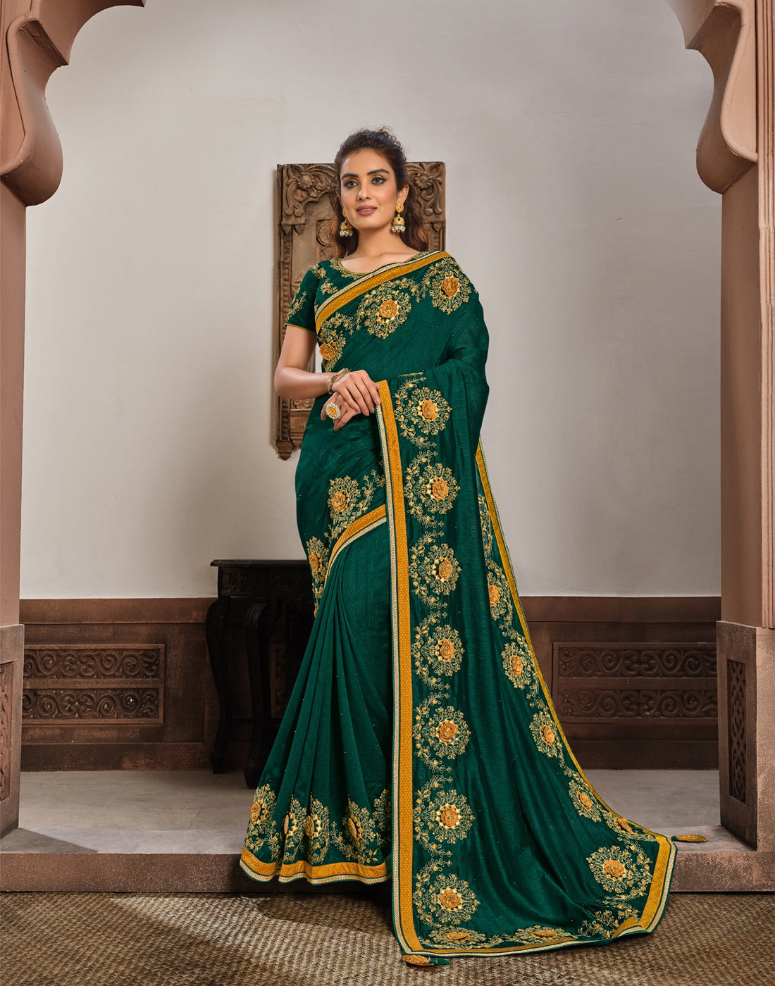 Green Gajji Silk Sequence Work Saree with Unstitched Blouse