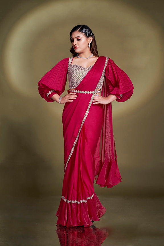 Rani Crepe Satin Silk Sequins Ready to Wear Saree.