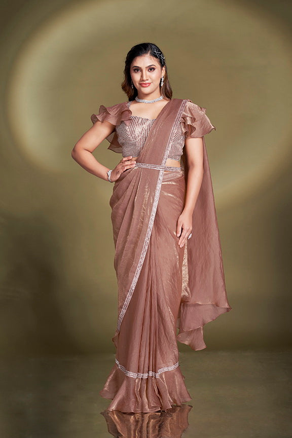 Rust Two Tone Satin Silk Sequins Ready to Wear Saree