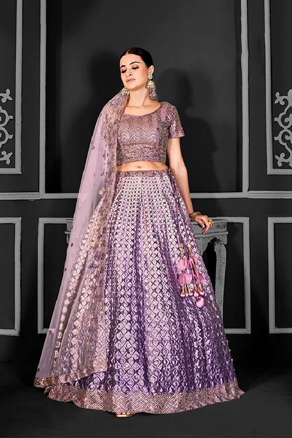 Purple Net Embroidered Semi Stitched Lehenga Choli