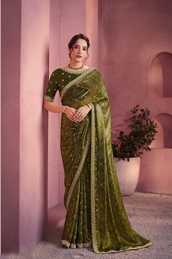 Saree Fabric : Two Tone Satin Silk Blouse Fabric: Satin Silk Color : Olive Green...