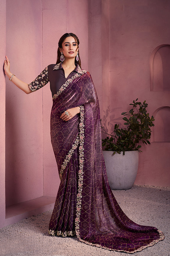Saree Fabric : Two Tone Satin Silk Blouse Fabric: Satin Silk Color : Lovender Work:...