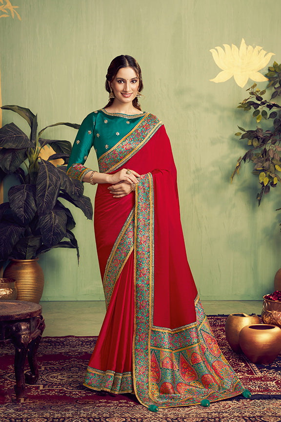Saree Fabric : Banarasi Rangkat Natural Silk Blouse Fabric : Satin silk Color : Teal ...