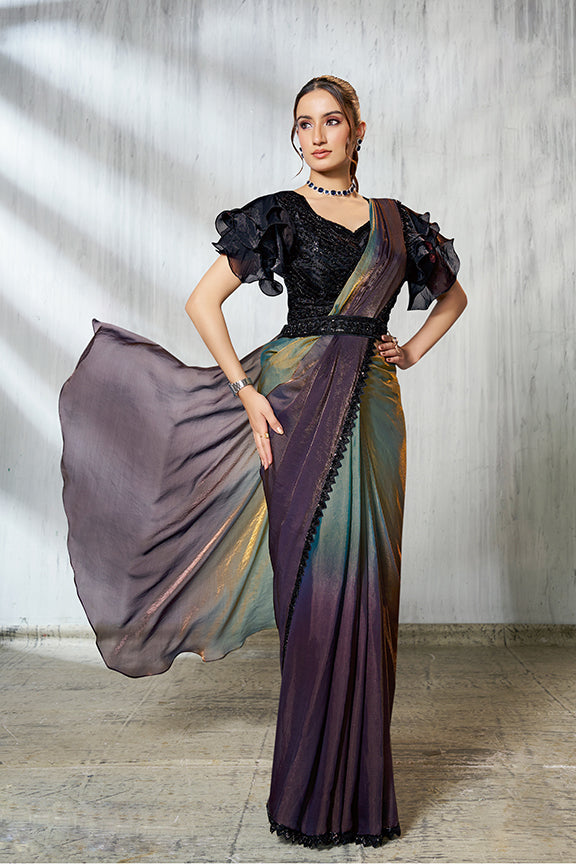 Chiku Two Tone Satin Silk Beads Ready to Wear Saree