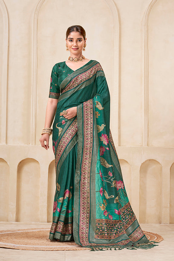 Green Sambalpuri silk Traditional Digital print with Foil Print Saree