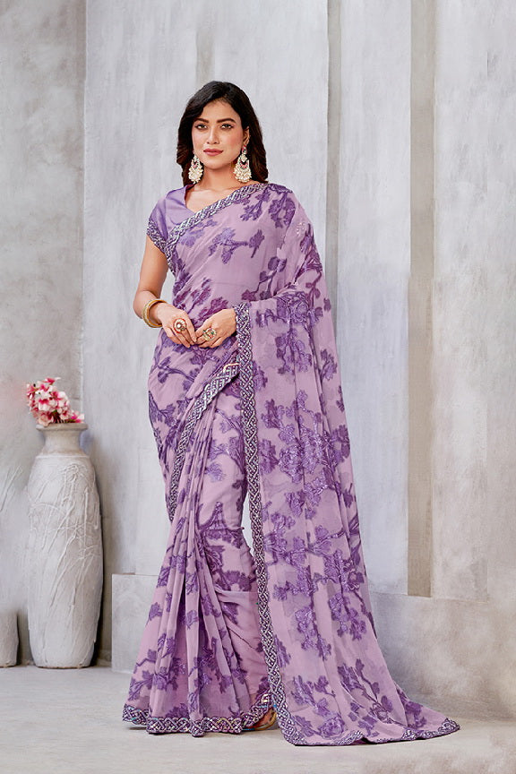Saree Fabric: Georgette Kasab Blouse Fabric: Malai Satin Color: Purple Work: Sequence, Cord, Embroidered, Stone...