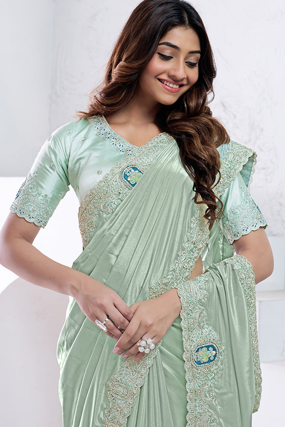 Sea Green Pure Crepe Silk Dual Sequence with Applic work Saree