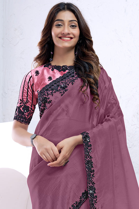 Mauve Pure Crepe Silk Sequence with hand work Saree