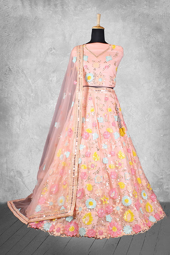 Lehenga Fabric : Net Blouse Fabric: Net Dupatta Fabric : Net Color : Peach Work:...