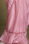 Pink Two Tone Satin Silk Sequins Ready to Wear Saree