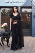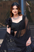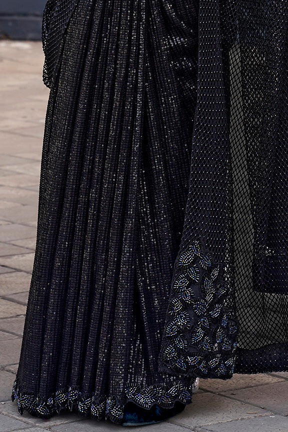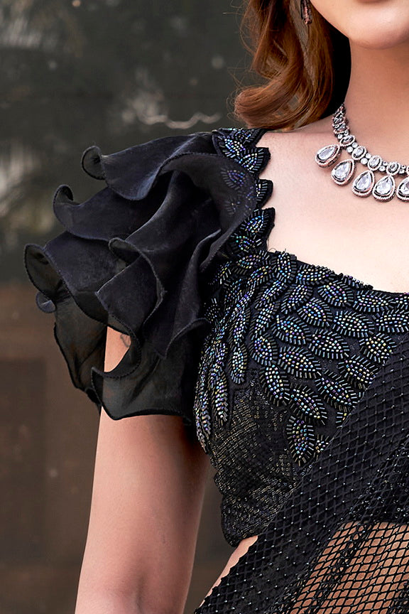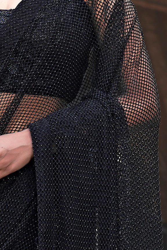Black Armani Tulle PureBeads Hand Work Designer Saree
