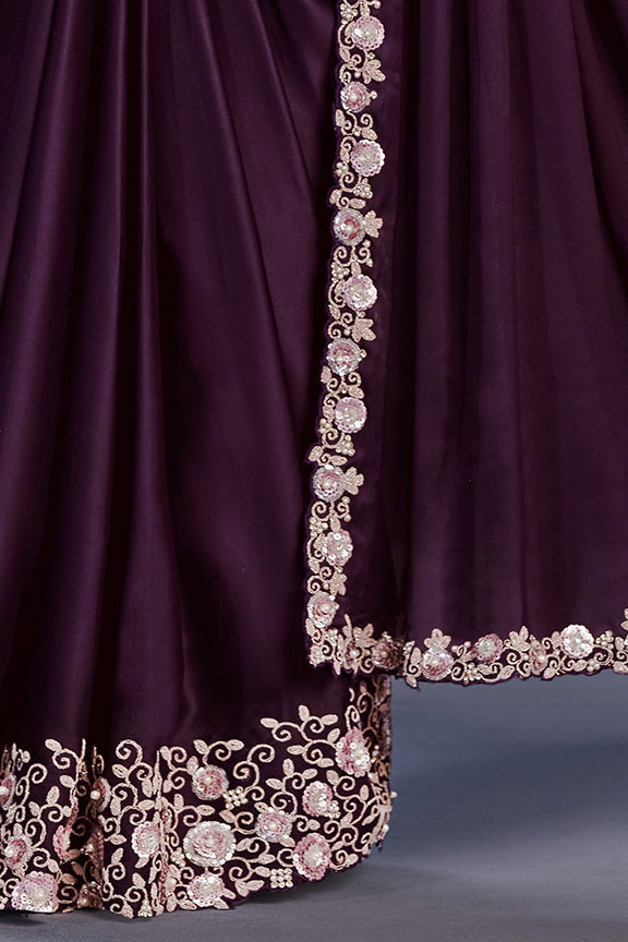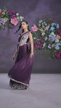 Purple Crape Satin Silk Embroidered Ready to Wear Saree with Stitched Blouse