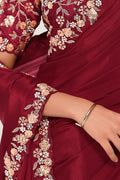 Maroon Pure Crepe Georgette Sequence Saree with Unstitched Blouse