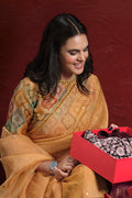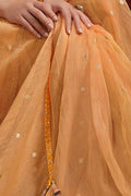 Orange Two Tone Jacquard Butti Tusser Pure Cut work Saree with Stitched Blouse