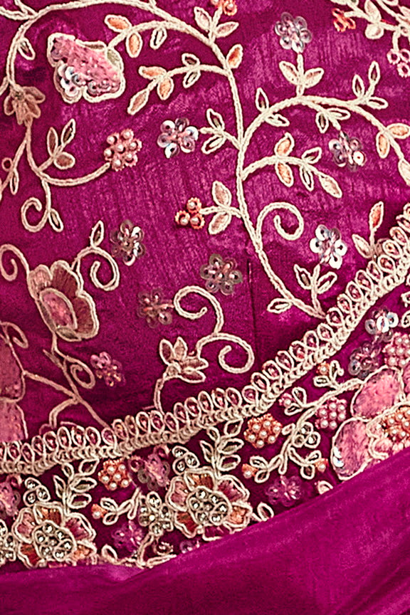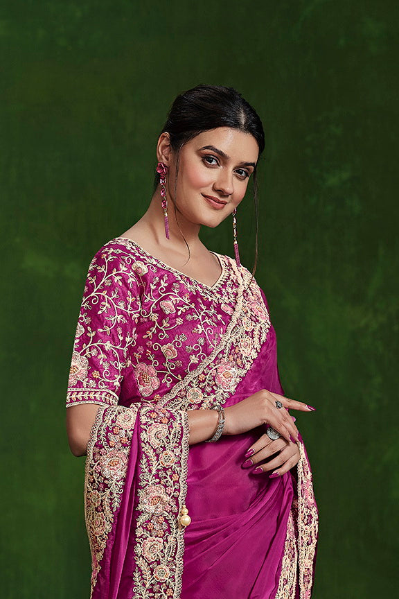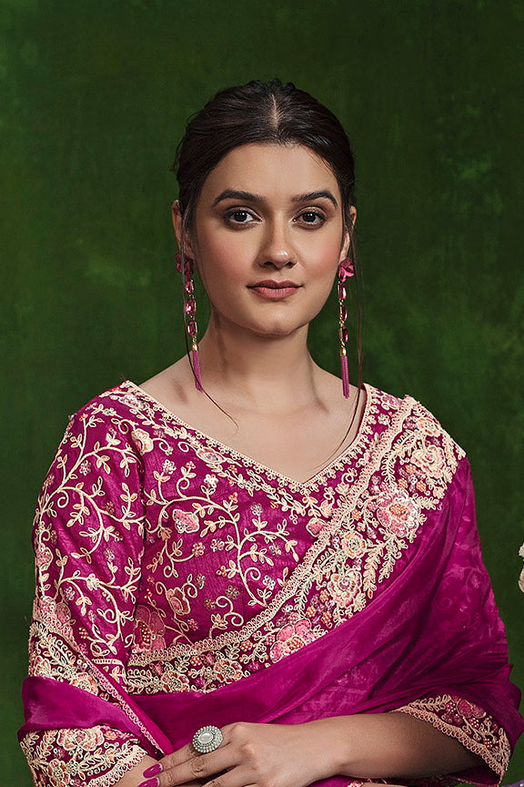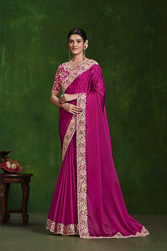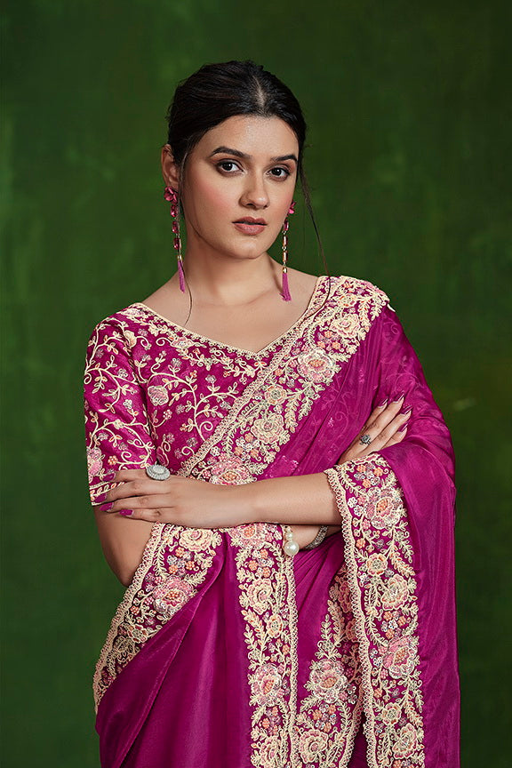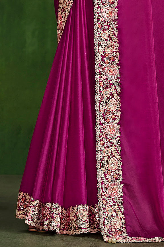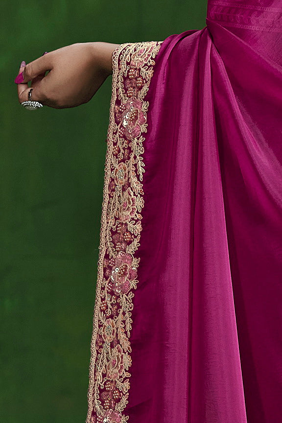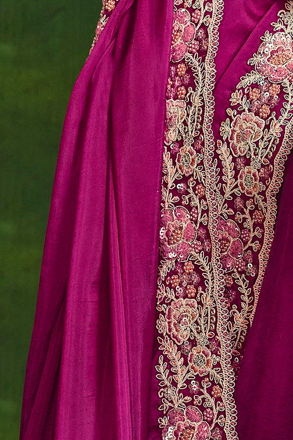 Pink Habotai Silk Sequence with Handwork Saree with Stitched Blouse
