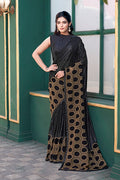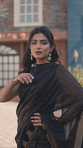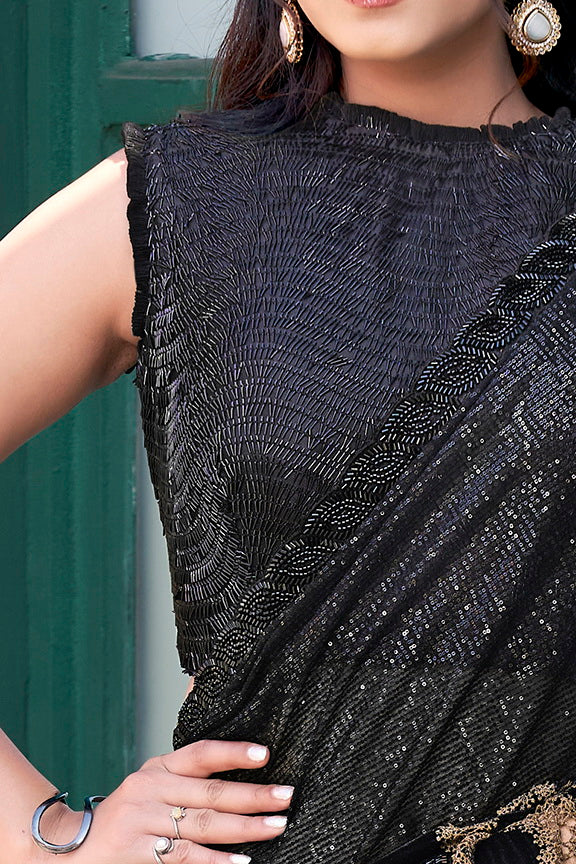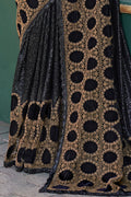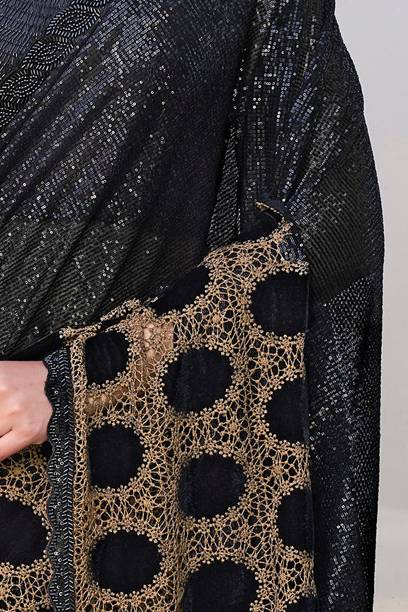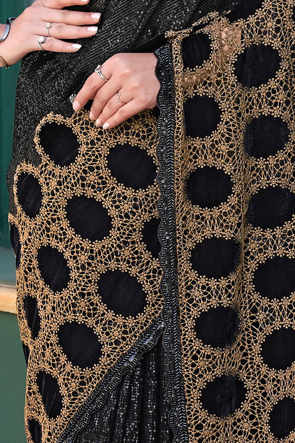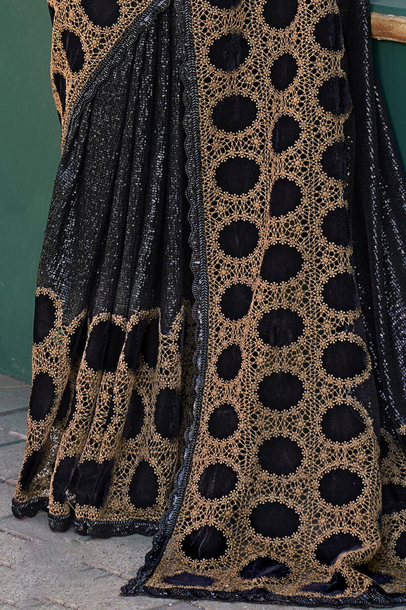 Black Gucci Velvet PureBeads Hand Work Designer Saree