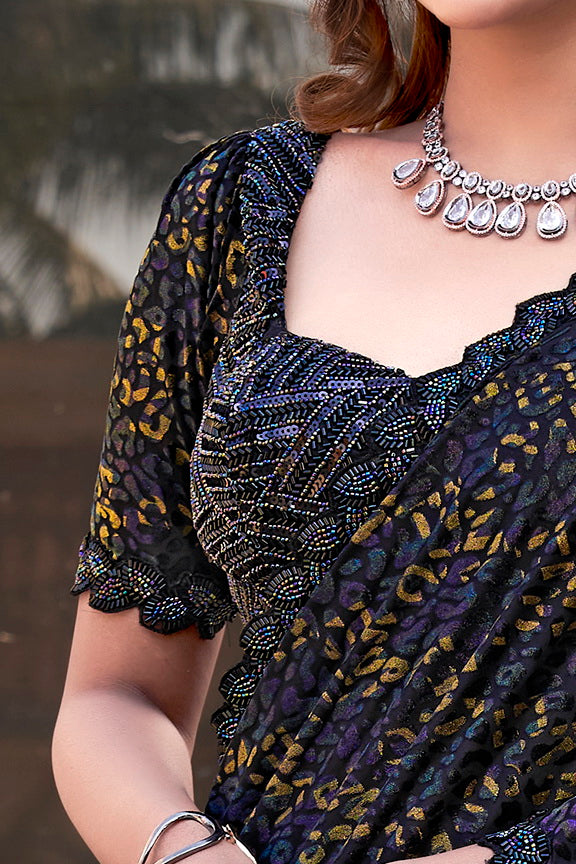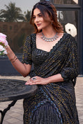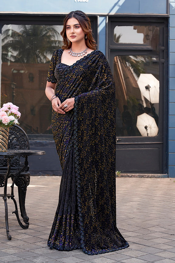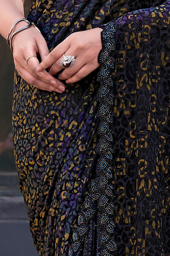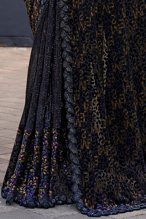 Black Gucci Velvet PureBeads Hand Work Designer Saree