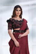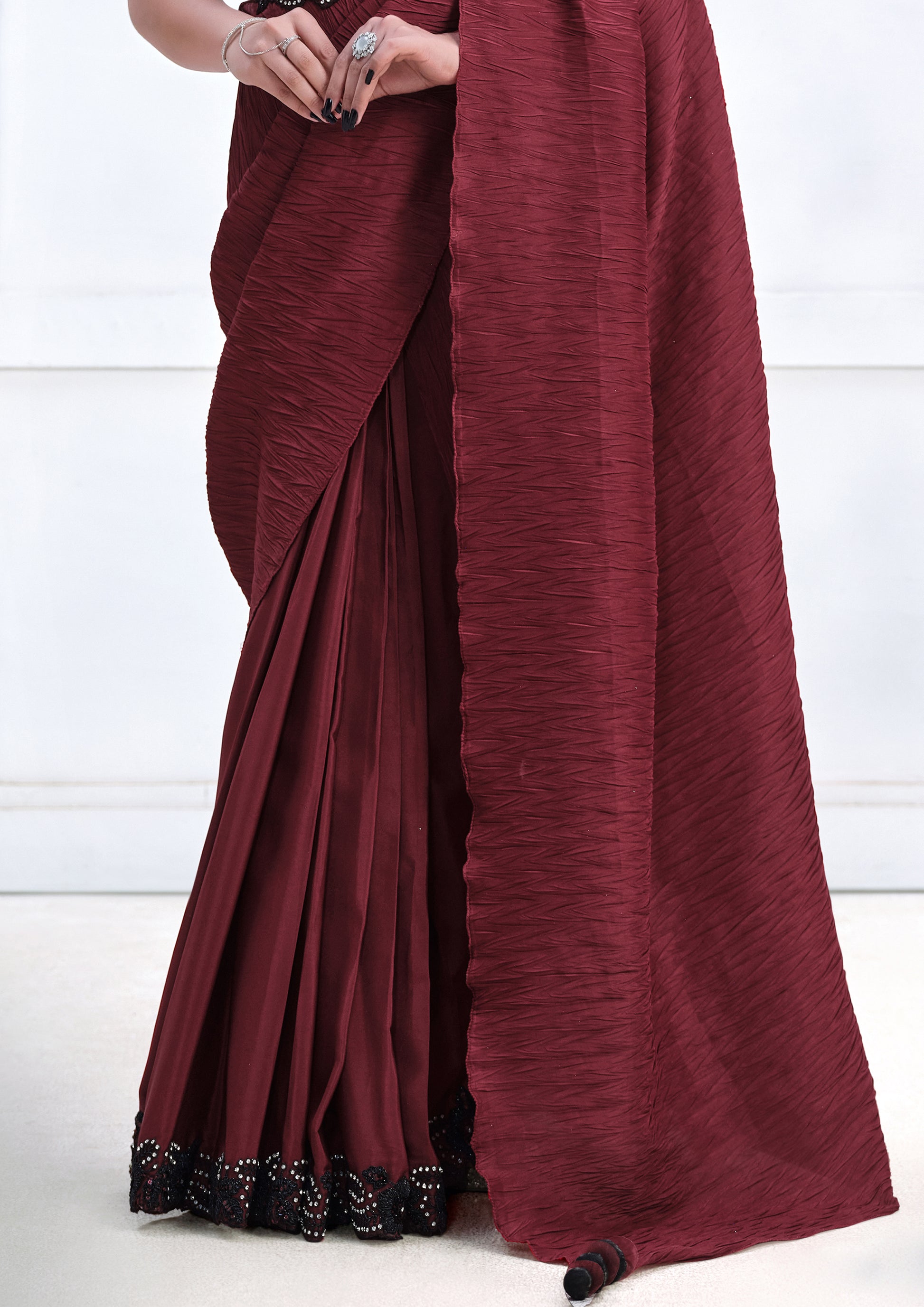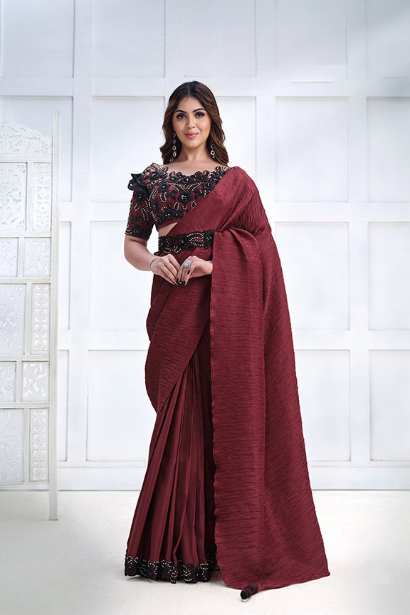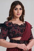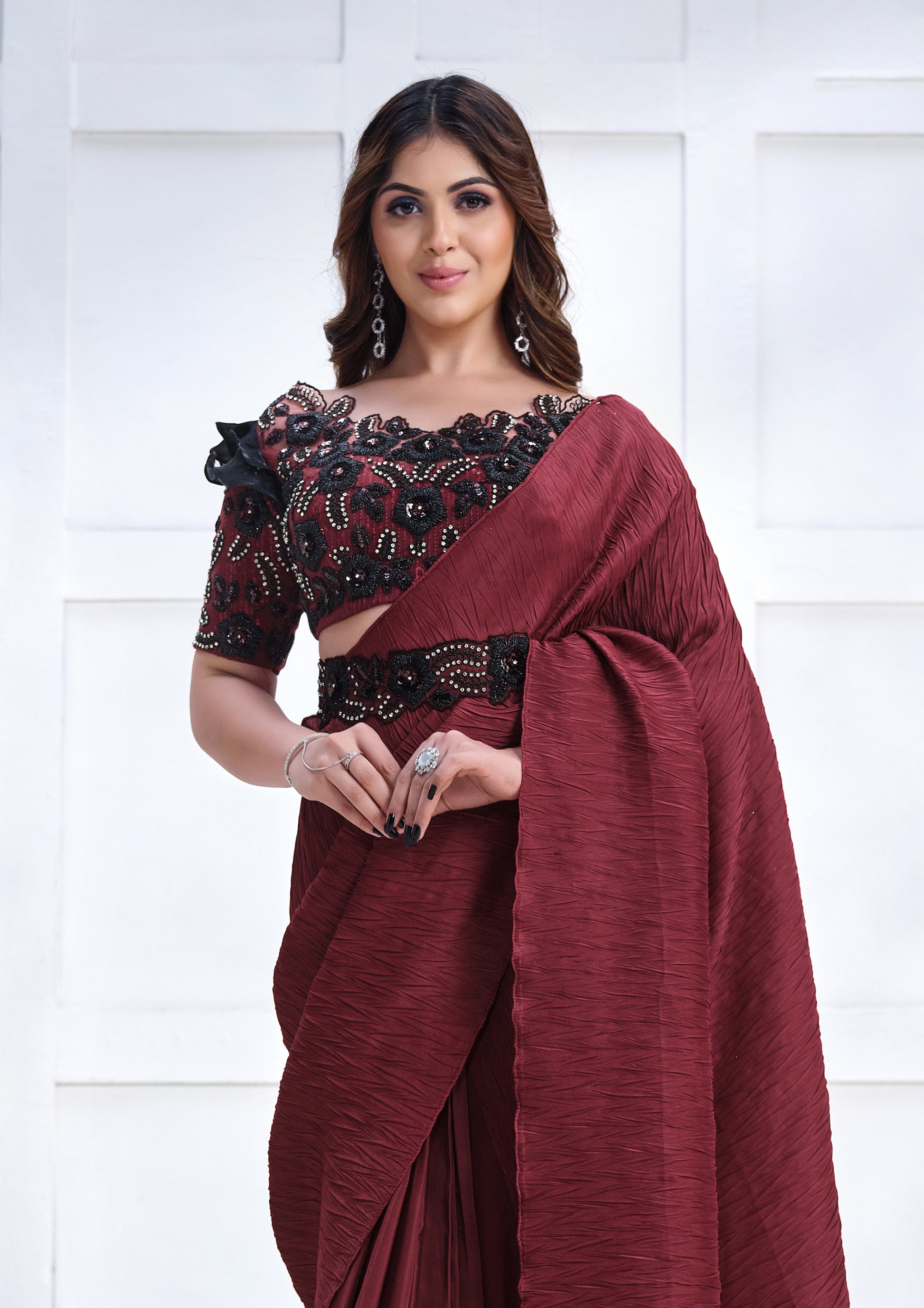 Maroon Silk Georgette Embroidered Designer Saree with Stitched Blouse