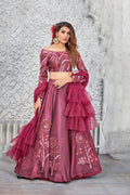 Wine Dual Tone Silk Semi Stitched Lehenga Choli with Dupatta