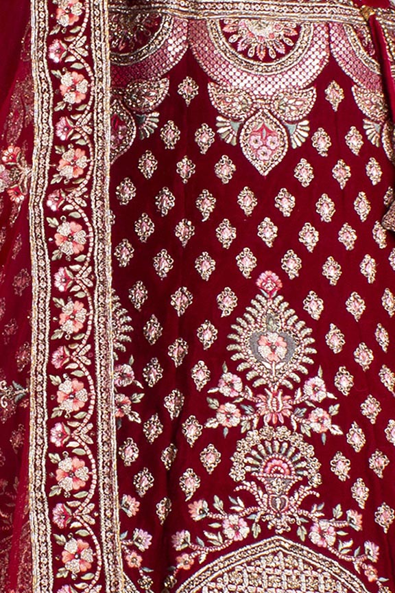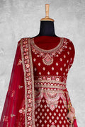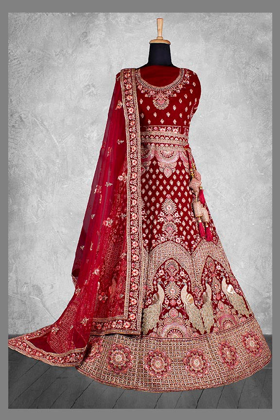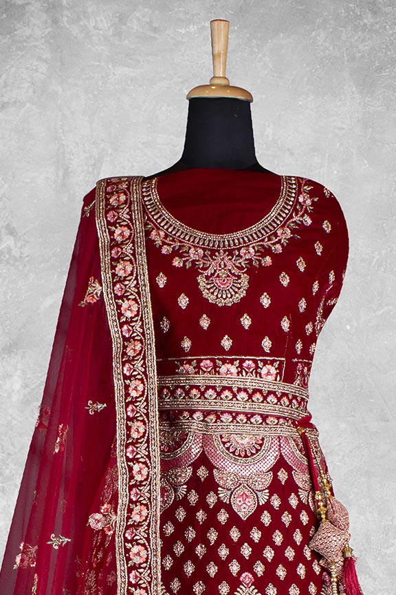 Maroon Velvet Semi Stitched Lehenga Choli with Dupatta