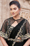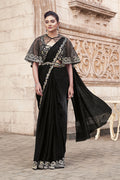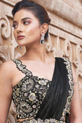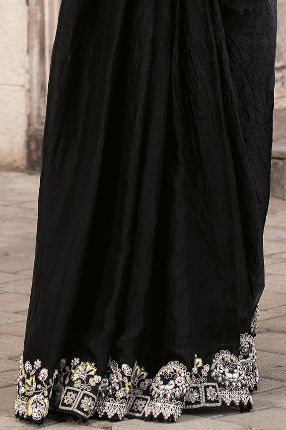 Black Two Tone Satin Silk Pearl Work Ready to wear saree