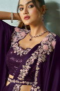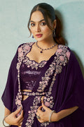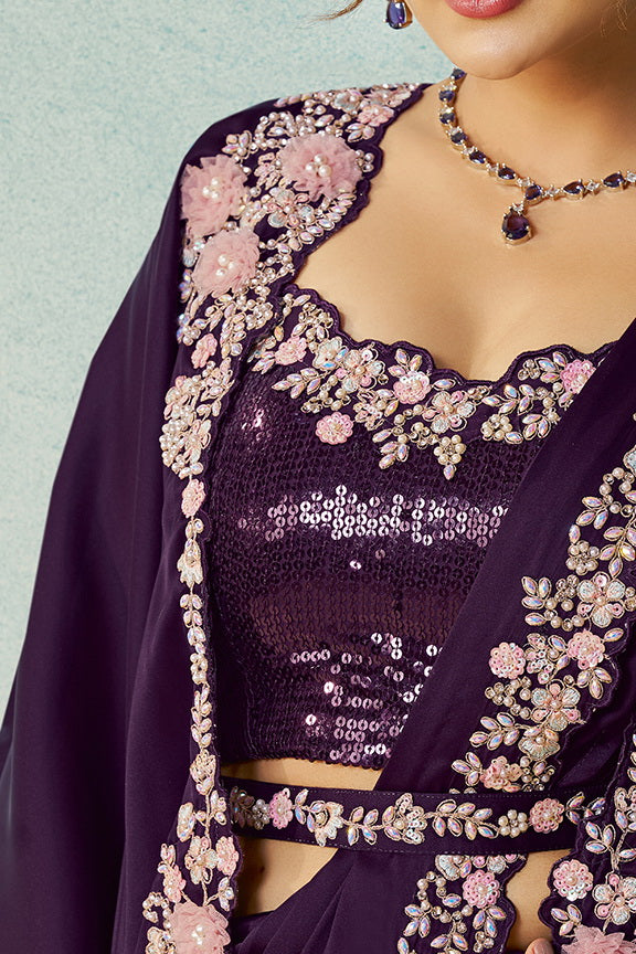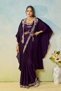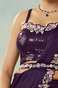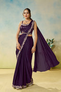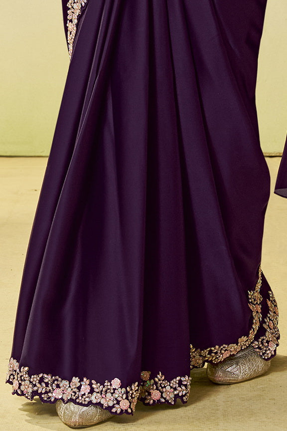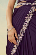 Purple Satin Silk Stone Handwork Ready to Wear Saree