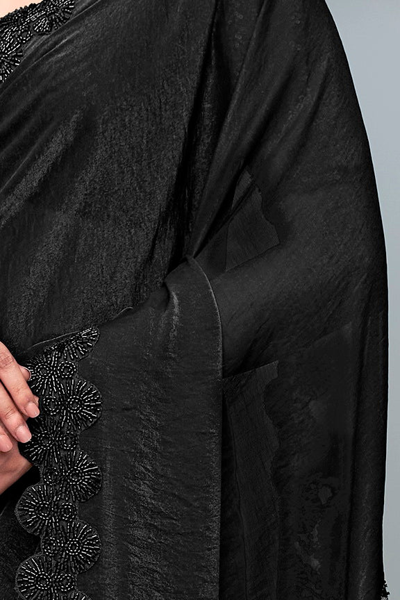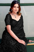 Black Versace Illusion PureBeads Hand Work Designer Saree