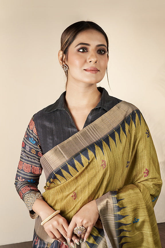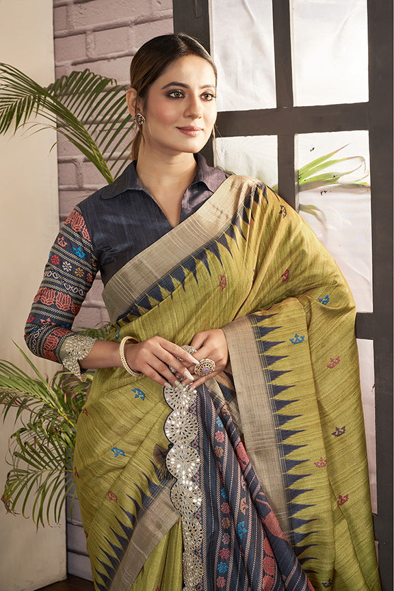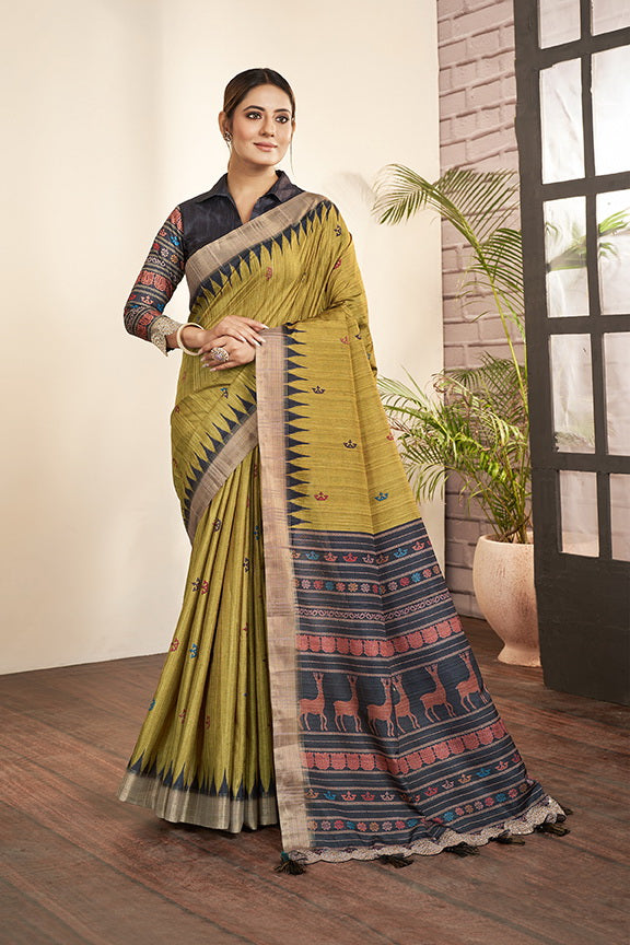 Green Bhagalpuri Silk Printed Saree with Unstitched Blouse