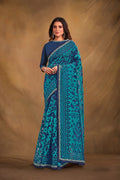 Blue Organza Embroidered Saree with Unstitched Blouse