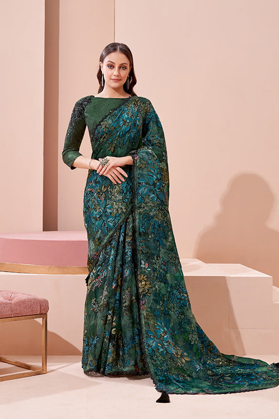 Green Handwork Brasso Saree