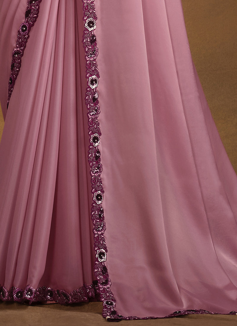 Pink Satin Silk Embroidery Designer Saree