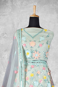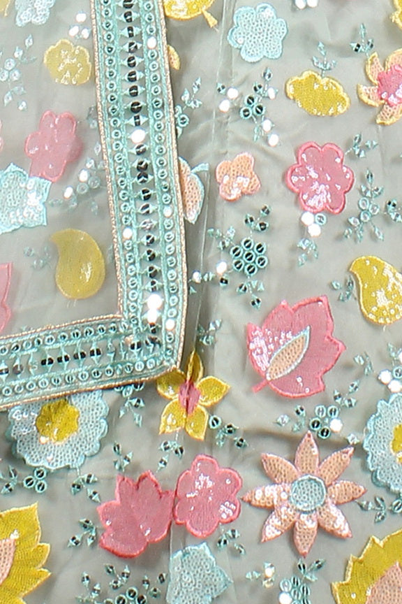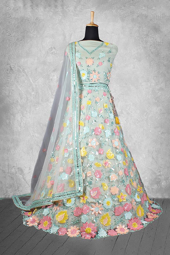 Green Net Embroidered Semi Stitched Lehenga Choli with Dupatta