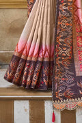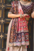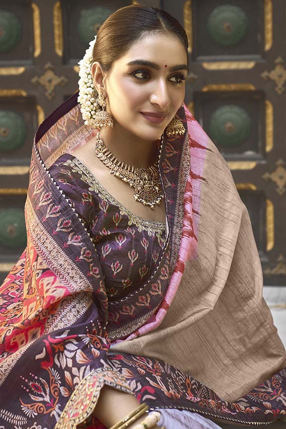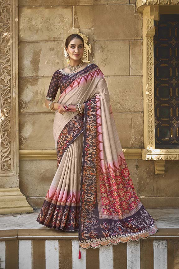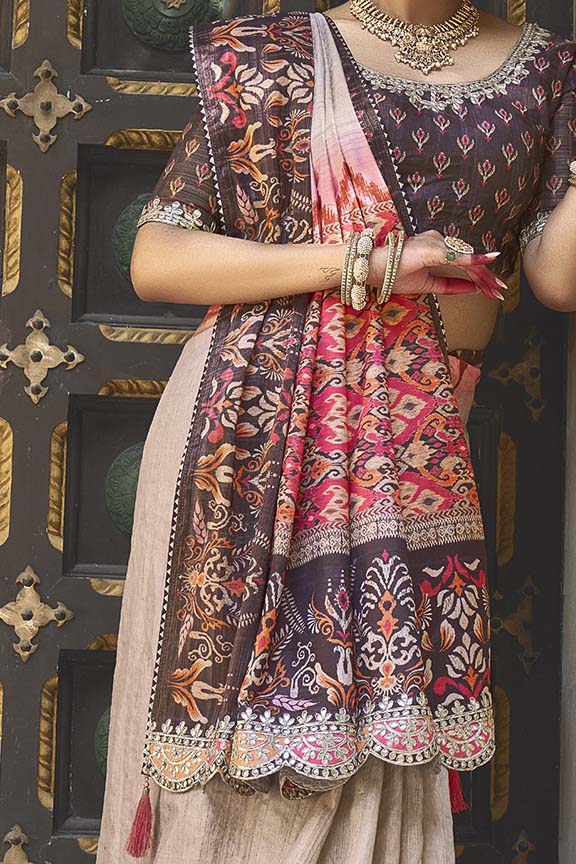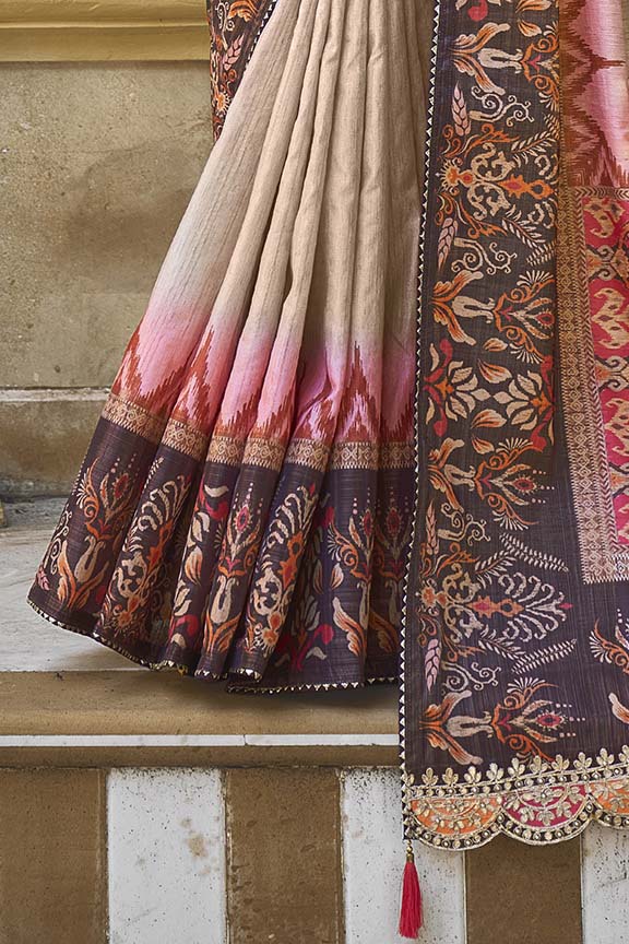 Beige Bhagalpuri Silk Pure Gota Work Saree with Unstitched Blouse