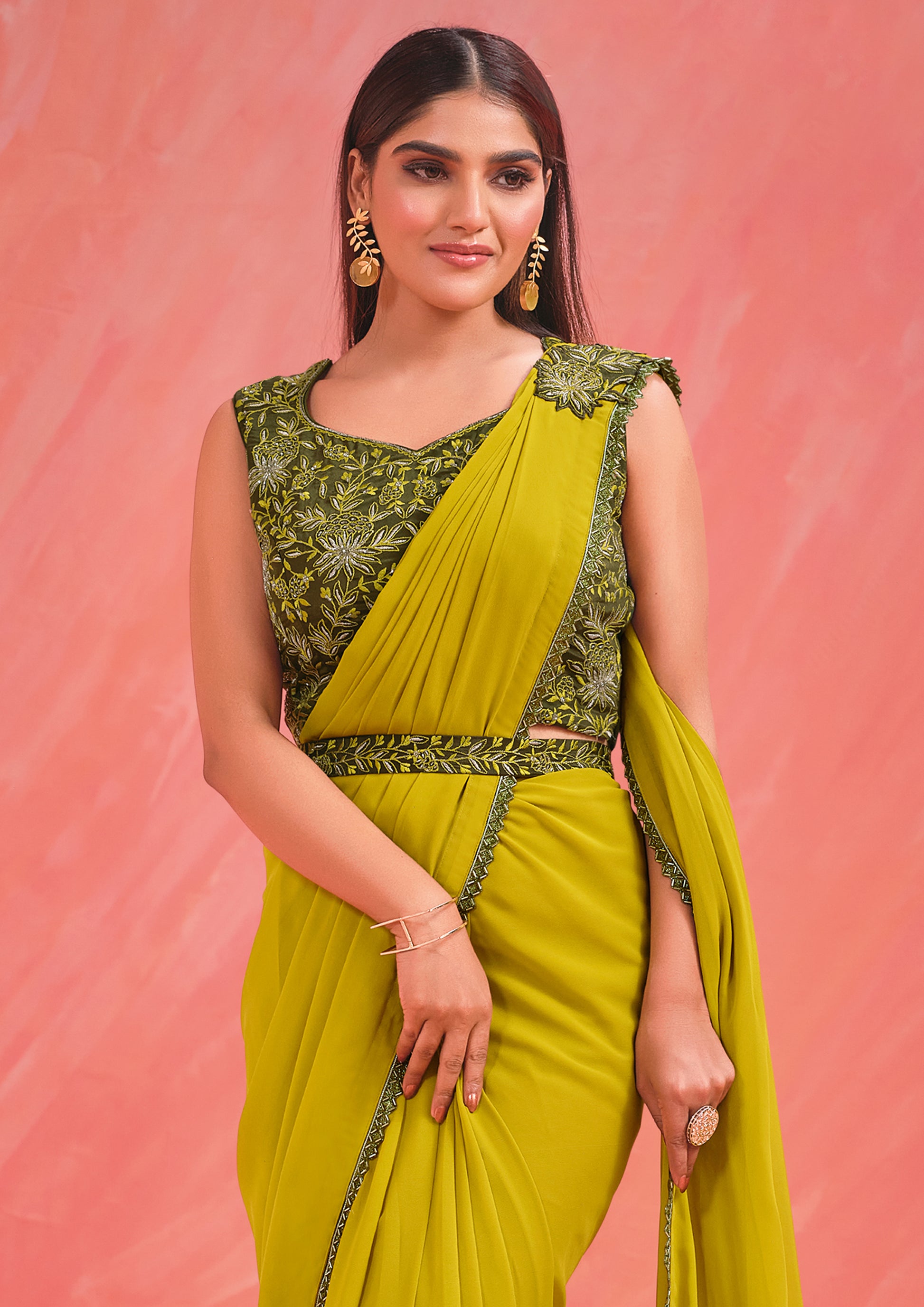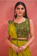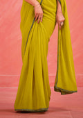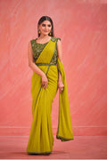 Green Georgette Designer Ready to Wear Saree with Stitched Blouse