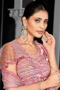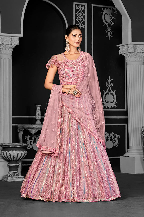 Pink Net Embroidered Semi Stitched Lehenga Choli