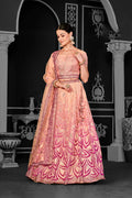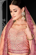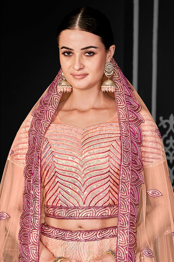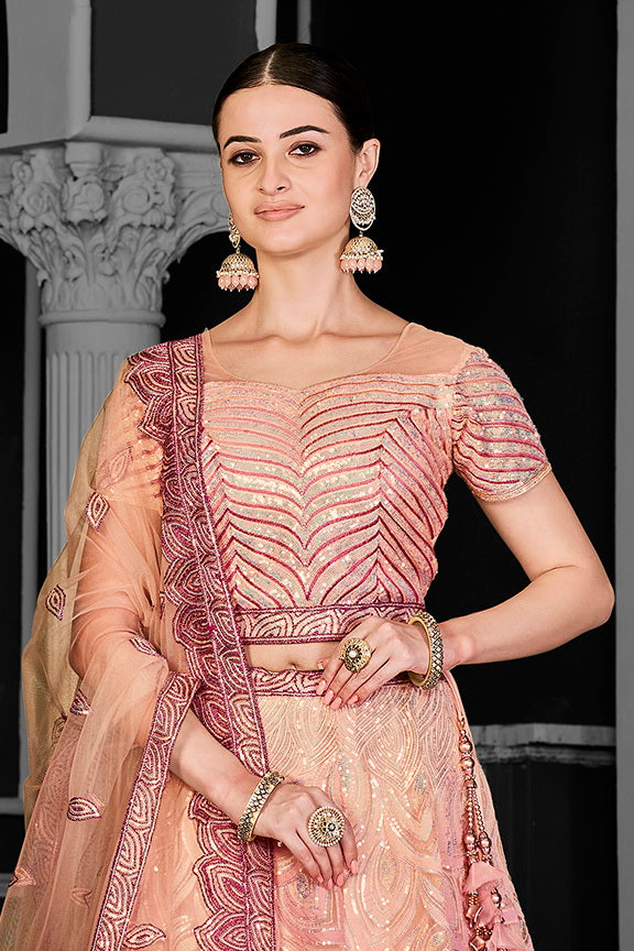 Peach Net Embroidered Semi Stitched Lehenga Choli