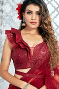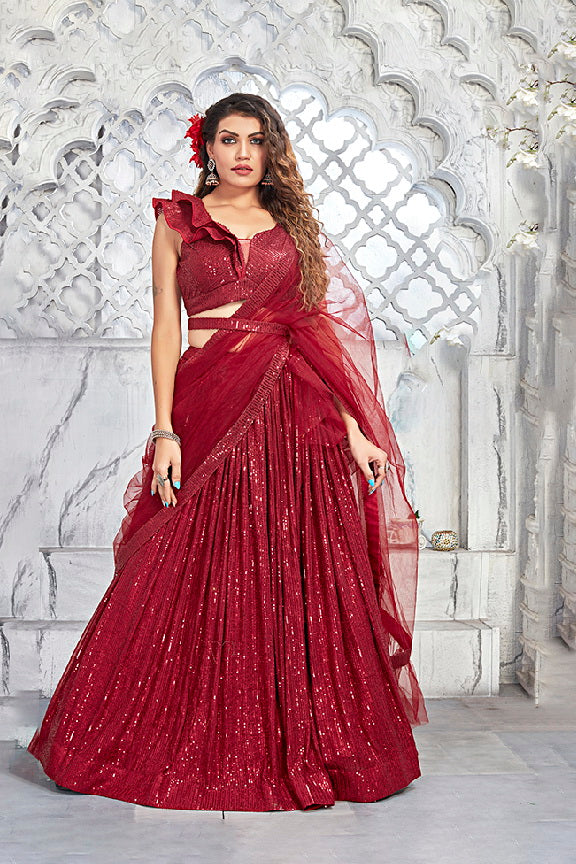 Maroon Sequence Net Semi Stitched Lehenga Choli with Dupatta