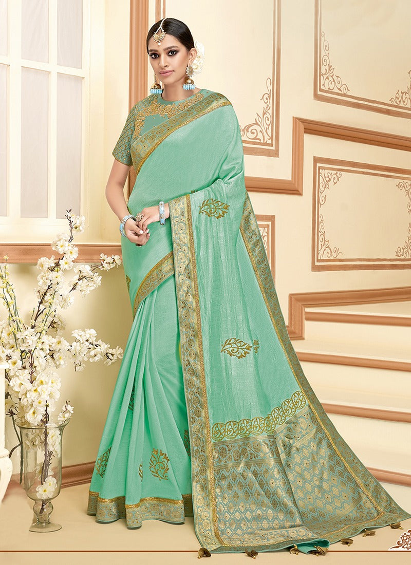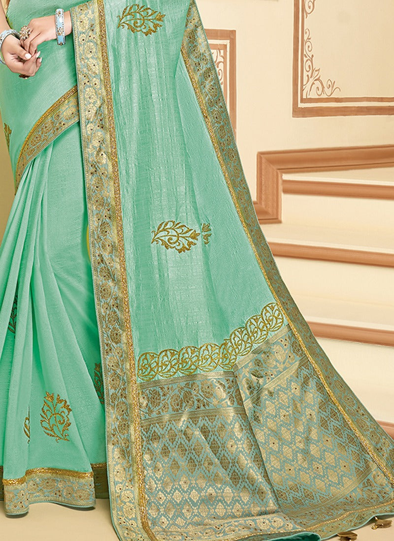 Blue Satin Silk Embroidered Saree