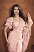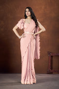 Peach Satin Silk Thread Saree with Stitched Blouse