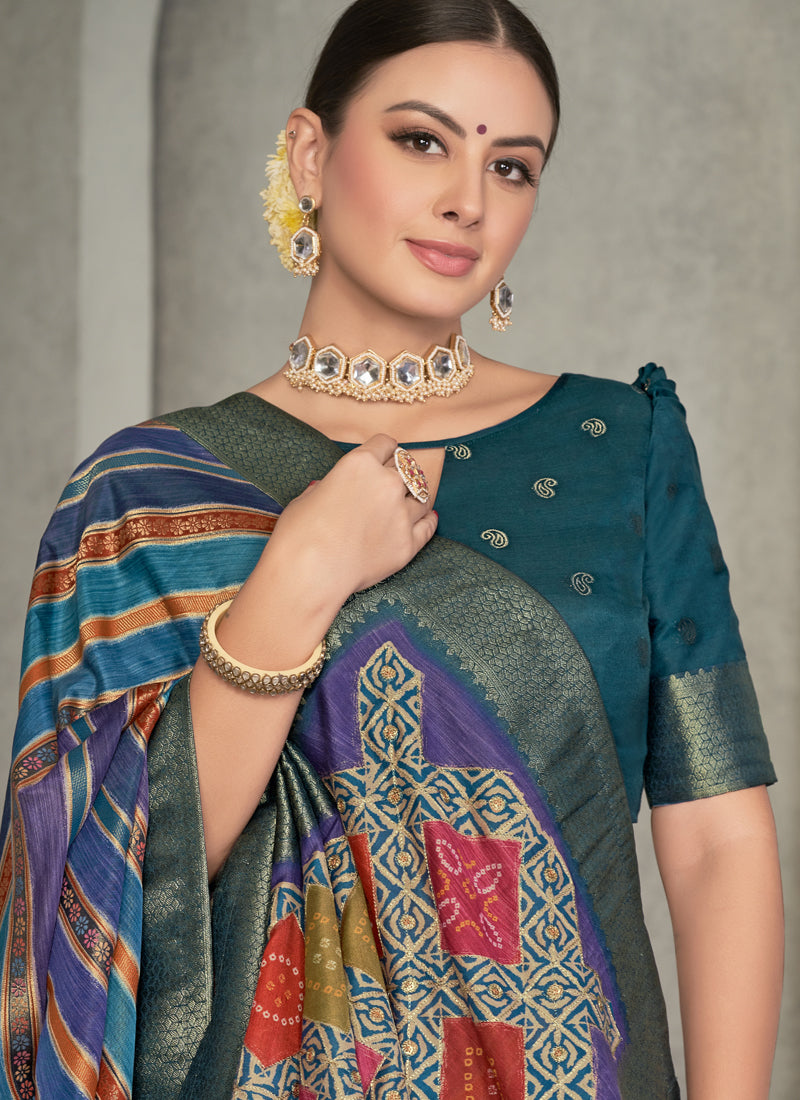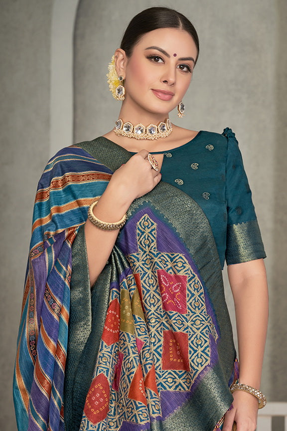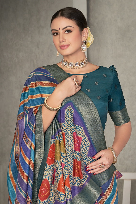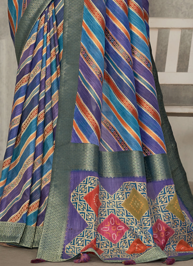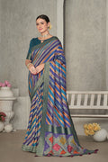 Blue Tussar Silk Laheriya Design Saree with Unstitched Blouse