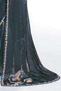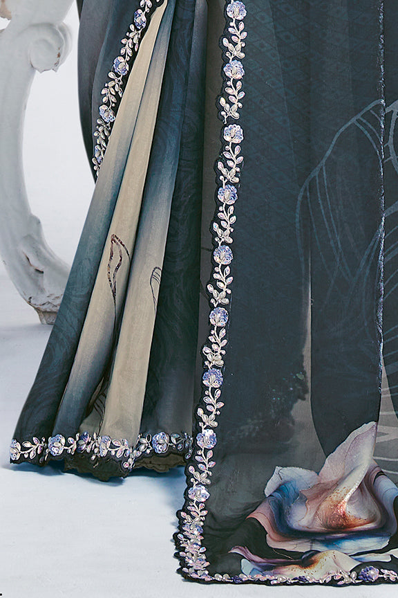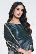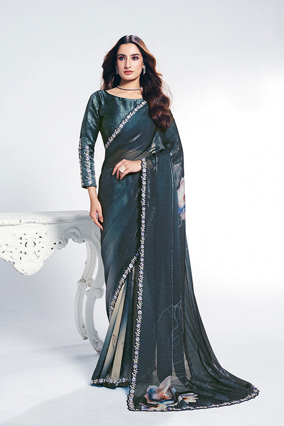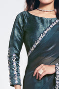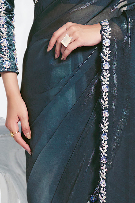 Blue Two Tone Satin Silk Stone Handwork Saree