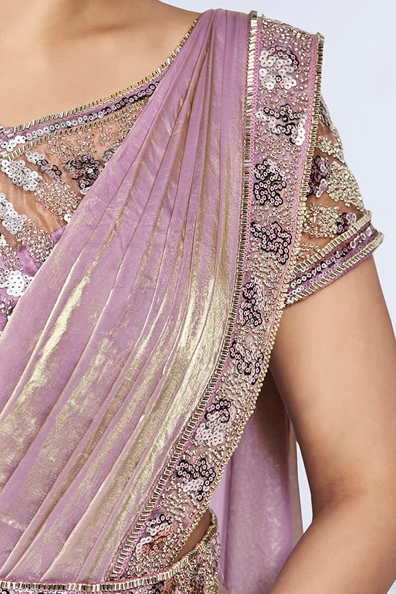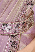 Pink Hand Work Satin Silk Ready to Wear Saree