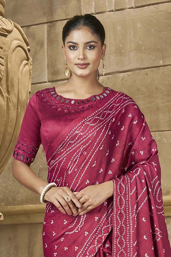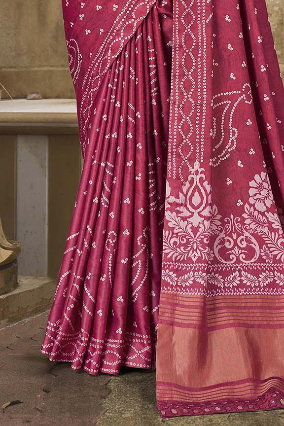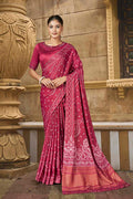 Pink Gajji Silk Hand work Saree with Unstitched Blouse