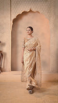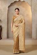 Golden Cora Zari Tissue Silk Handwork Designer Saree