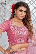 Pink Net Unstitched Lehenga Choli with Dupatta