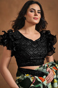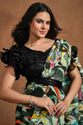 Green Hand Work Satin Silk Ready to Wear Saree
